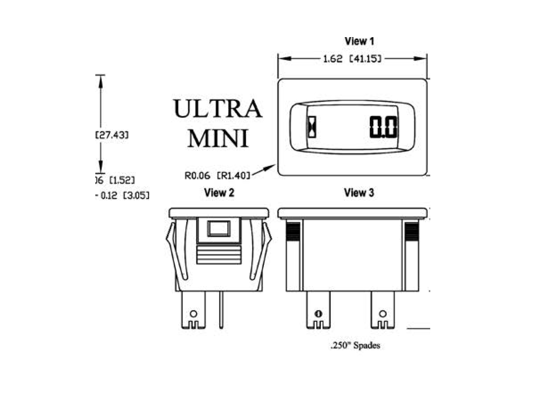 - Mode Button to toggle trough available modes. Depress and release to toggle between functions (hours, tachometer, service alerts, etc.), while in specific function. Depress and hold to create an action (clear, reset, interrogate)